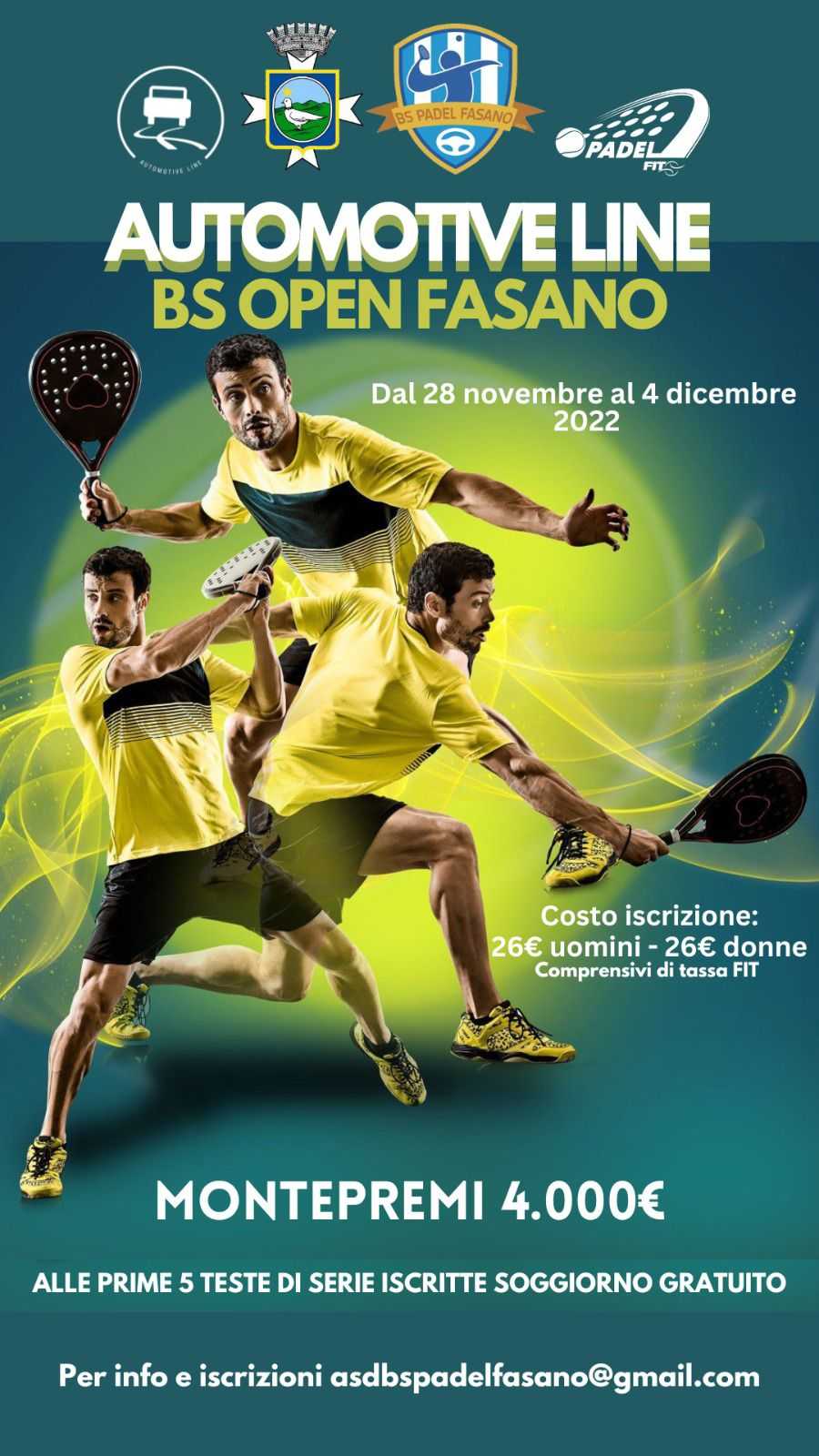 La BS Padel Fasano è pronta a ospitare l’Open internazionale “Automotive Line BS Padel Fasano”, competizione a cui prenderà parte anche il sodalizio sportivo fasanese e che vedrà sfidarsi campioni del padel provenienti da tutta Italia.
