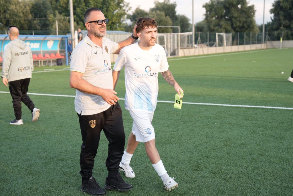 Nonostante l’inferiorità numerica i fasanesi non si scompongono e fanno comunque la loro gara fatta di corsa e sacrificio per sopperire al gap numerico. Nonostante tutto, la partita è molto equilibrata e le occasioni non mancano, né da una parte né dall’altra. L’equilibrio viene interrotto allo scadere quando la gara sembrava terminare a reti bianche: Galeota decide di diventare protagonista ed eroe della domenica saltando due avversari ed infilando, con un sinistro forte e preciso, alle spalle del portiere Liso.